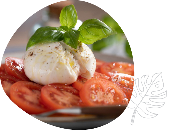 מיקס עגבניות שרי צבעוניות, קונפי ארטישוק ושום, בלסמי מצומצם ותבלין טוסקנה.
